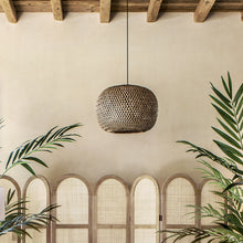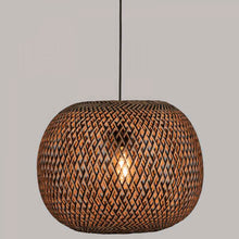 Fallegt bambus loftljós, einstakt og fallegt ásamt náttúrulegum ljósum bambus er mynstrið brotið upp með svörtum bambusþráðum