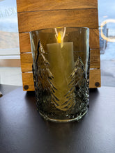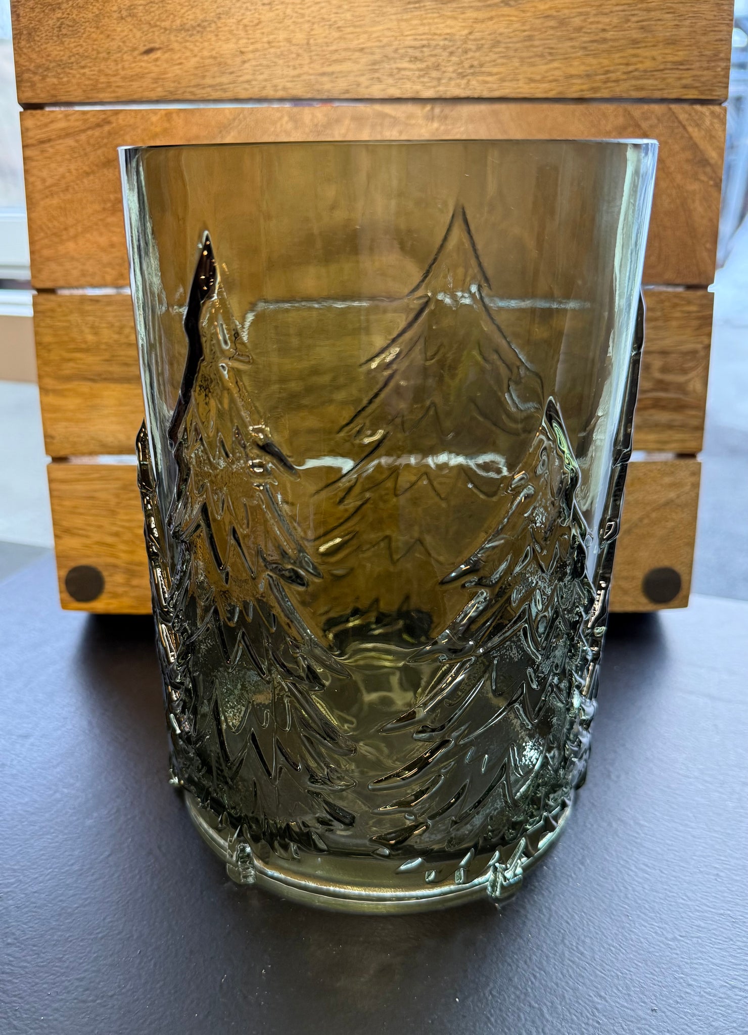 Fallegt stórt kertaglas með jólatrjám, glerið er fallega grænt Stærð: þvermál 16cm og hæð 22cm