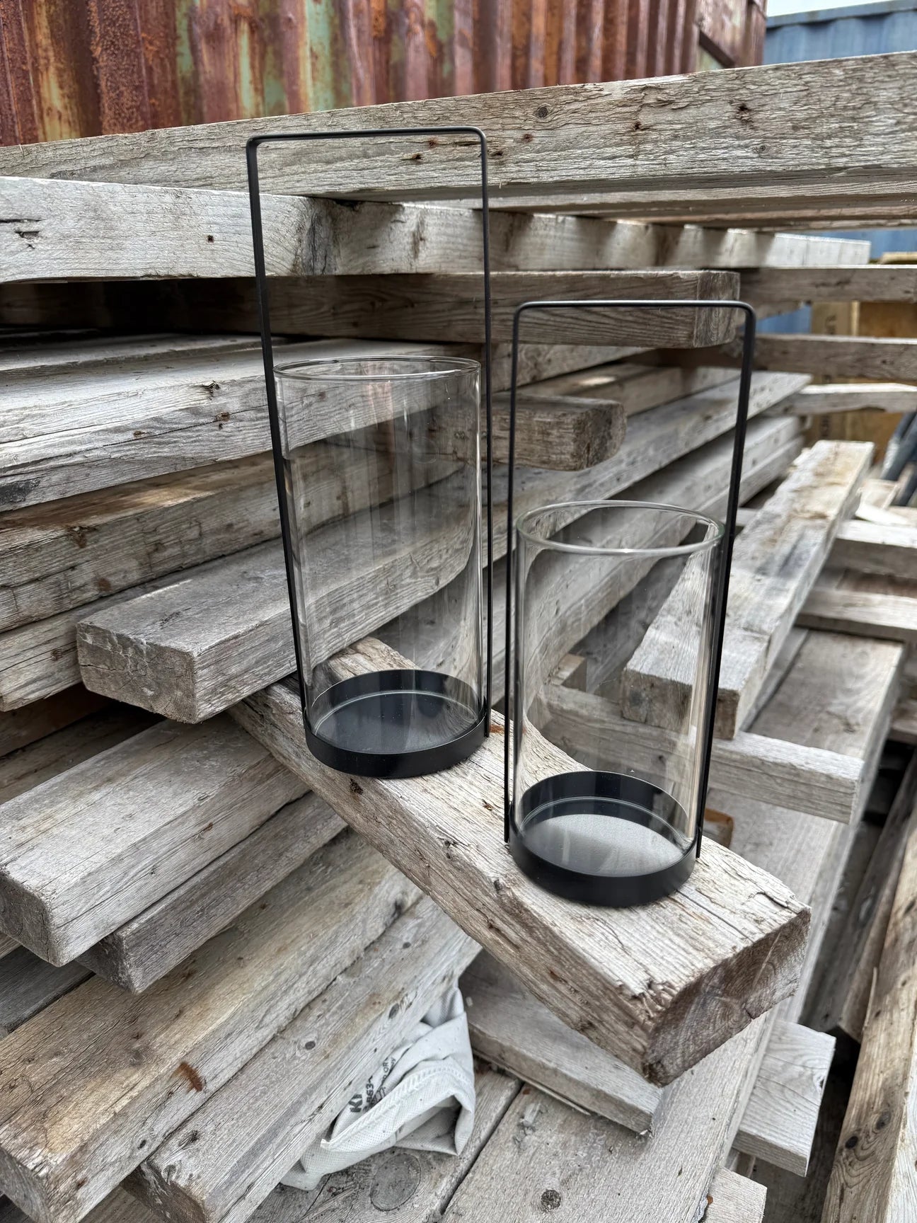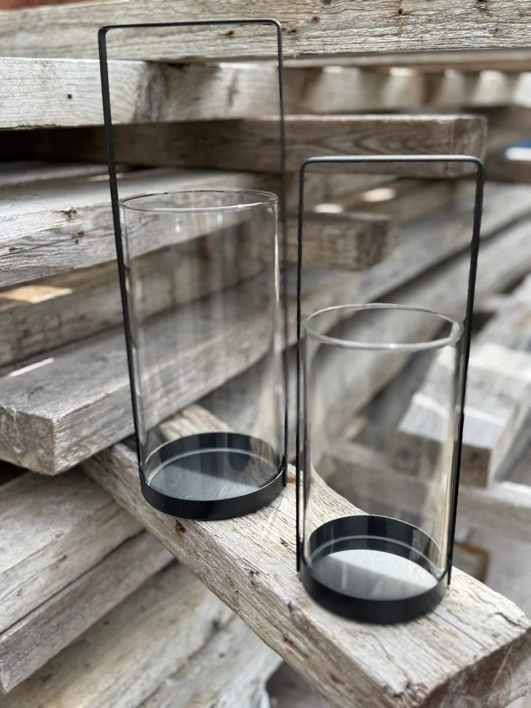 Fallegar kertaluktir, grindin er úr svartlituðu járni með glerstjaka