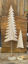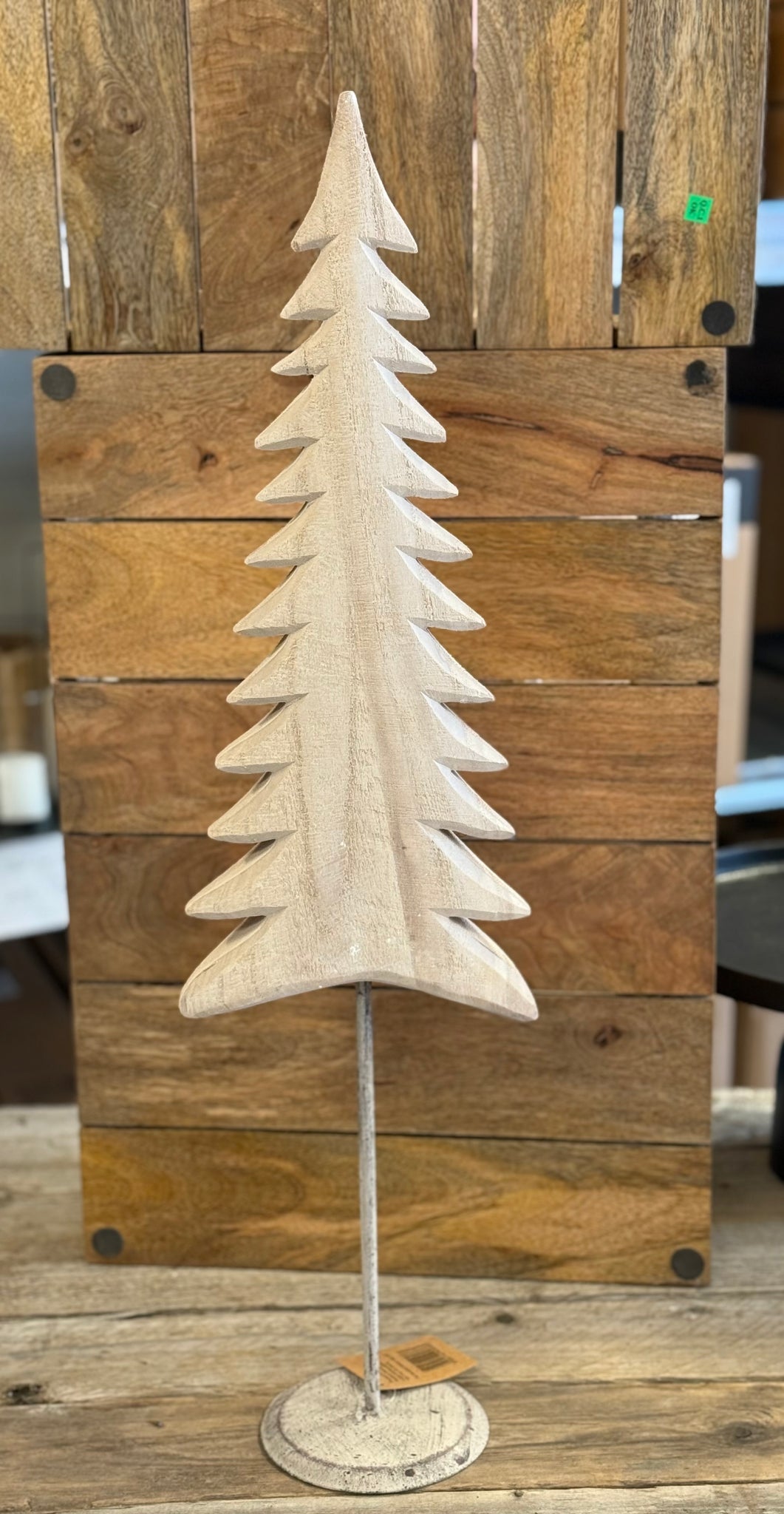 Hvít viðar jólatré á járnstandi. Jólatréð kemur í tveimur stærðum
