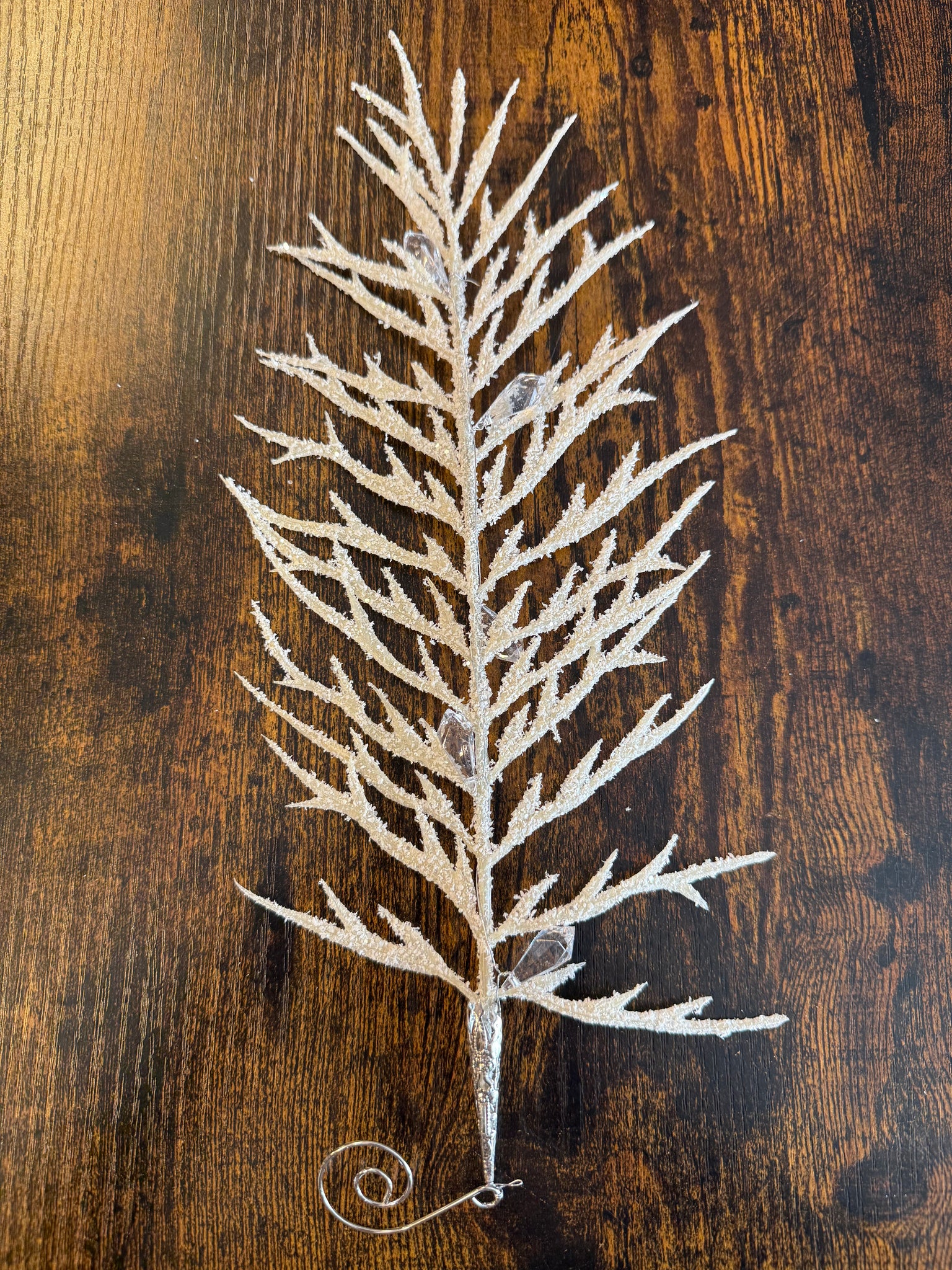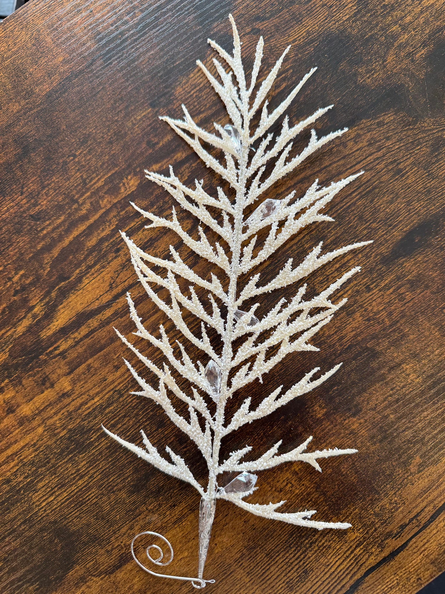 Falleg hvít skrautgrein úr plasti með glærum steinum