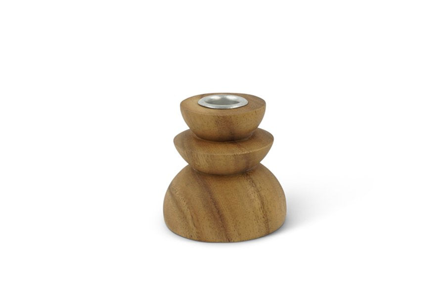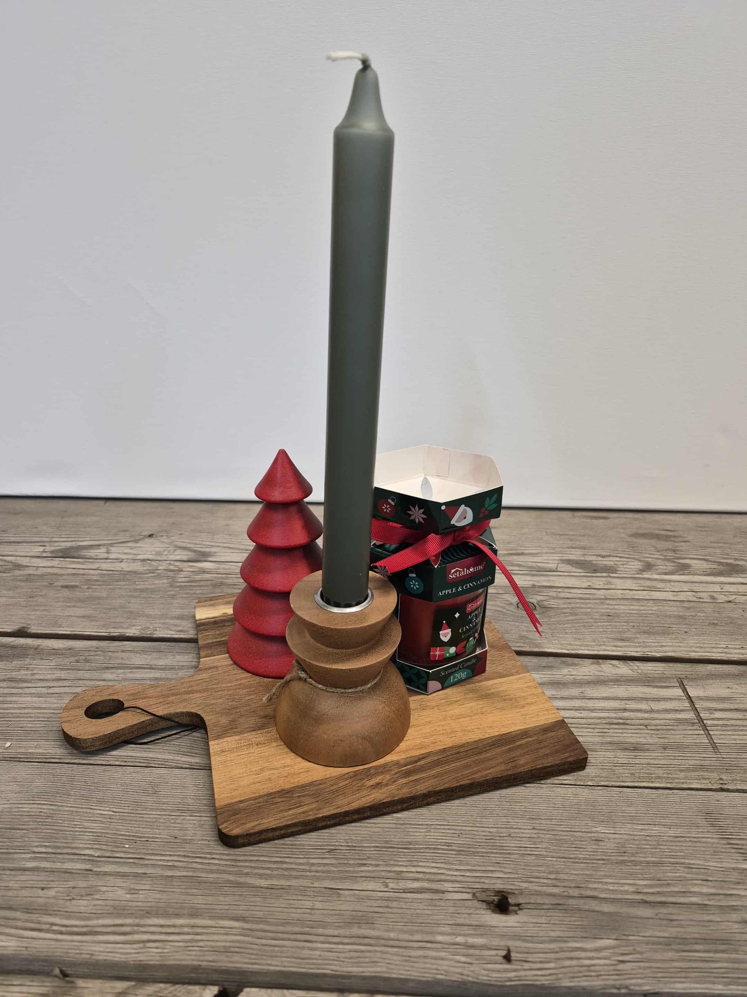 Viðarkertastjaki 7,5cm og mosagrænt kerti