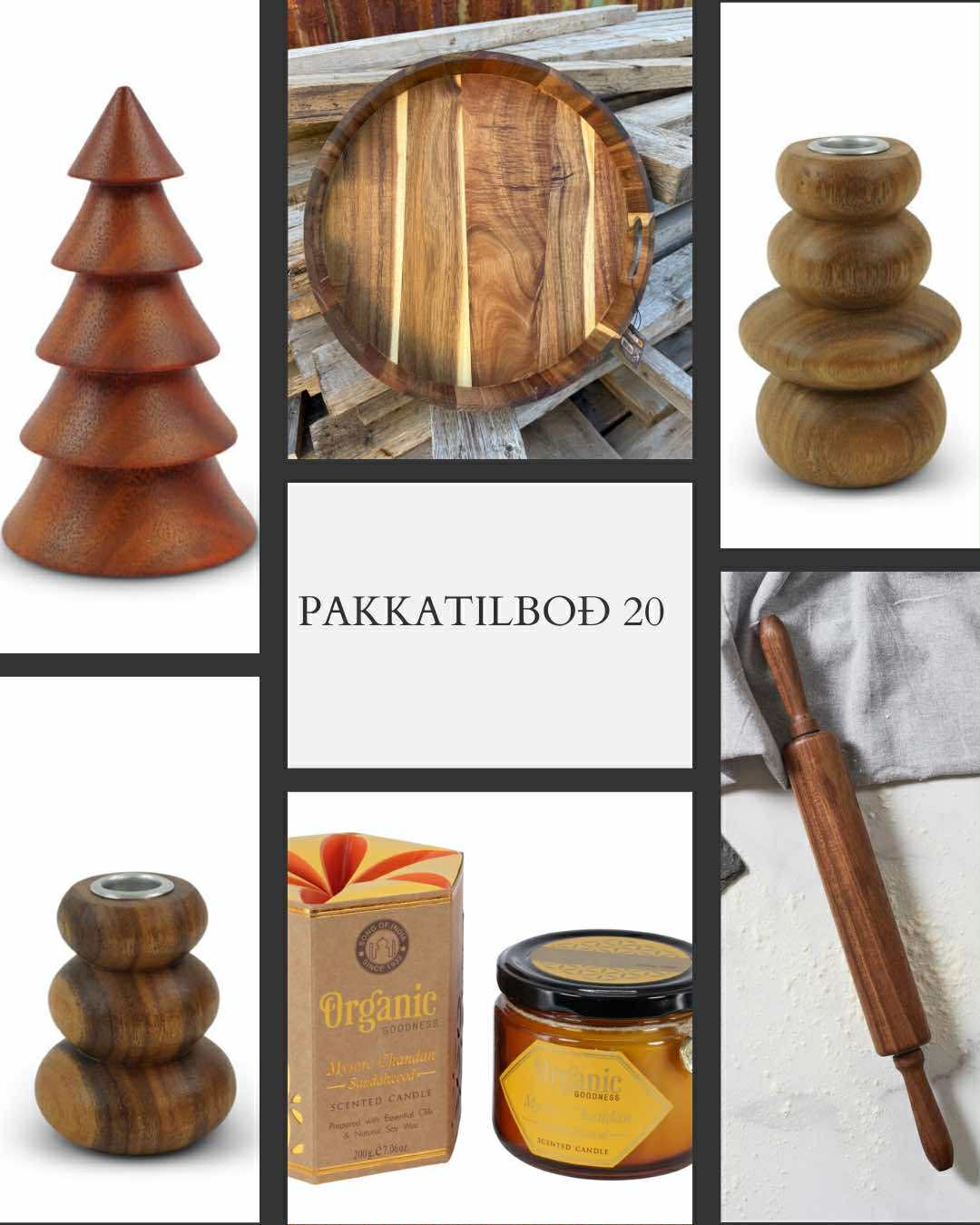 Kökukefli úr Acai við, 45cm x 4,5cm og tvö ljós kerti
