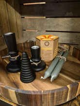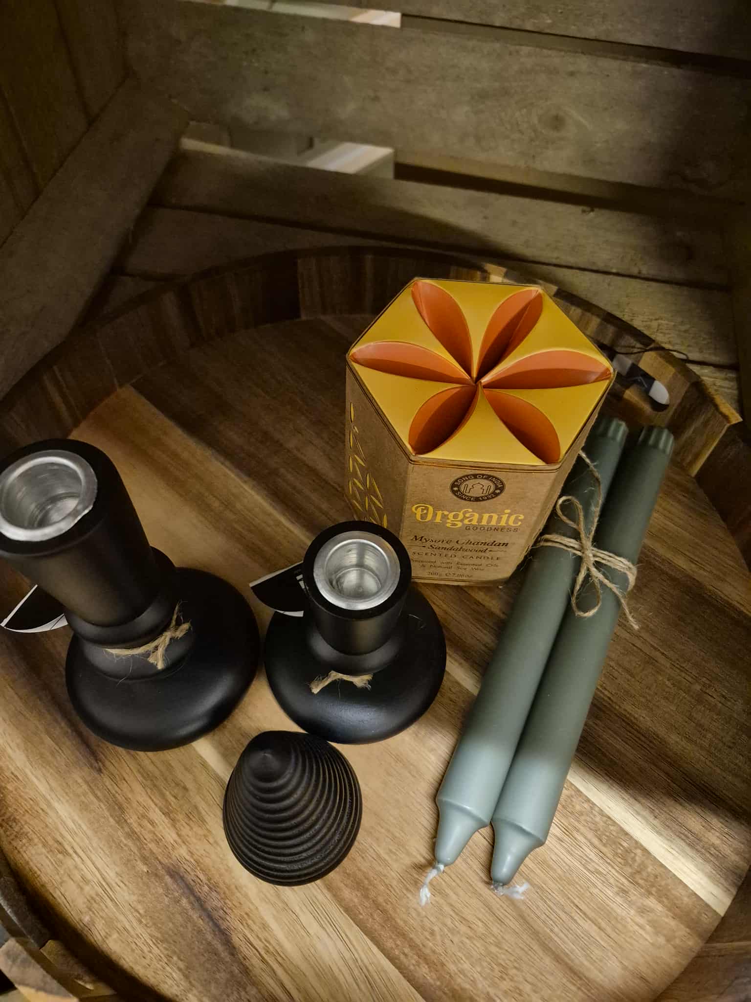 Tveir svartir viðarkertastjakar, stærð: 13,5cm og 8,5cm