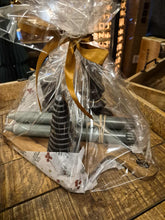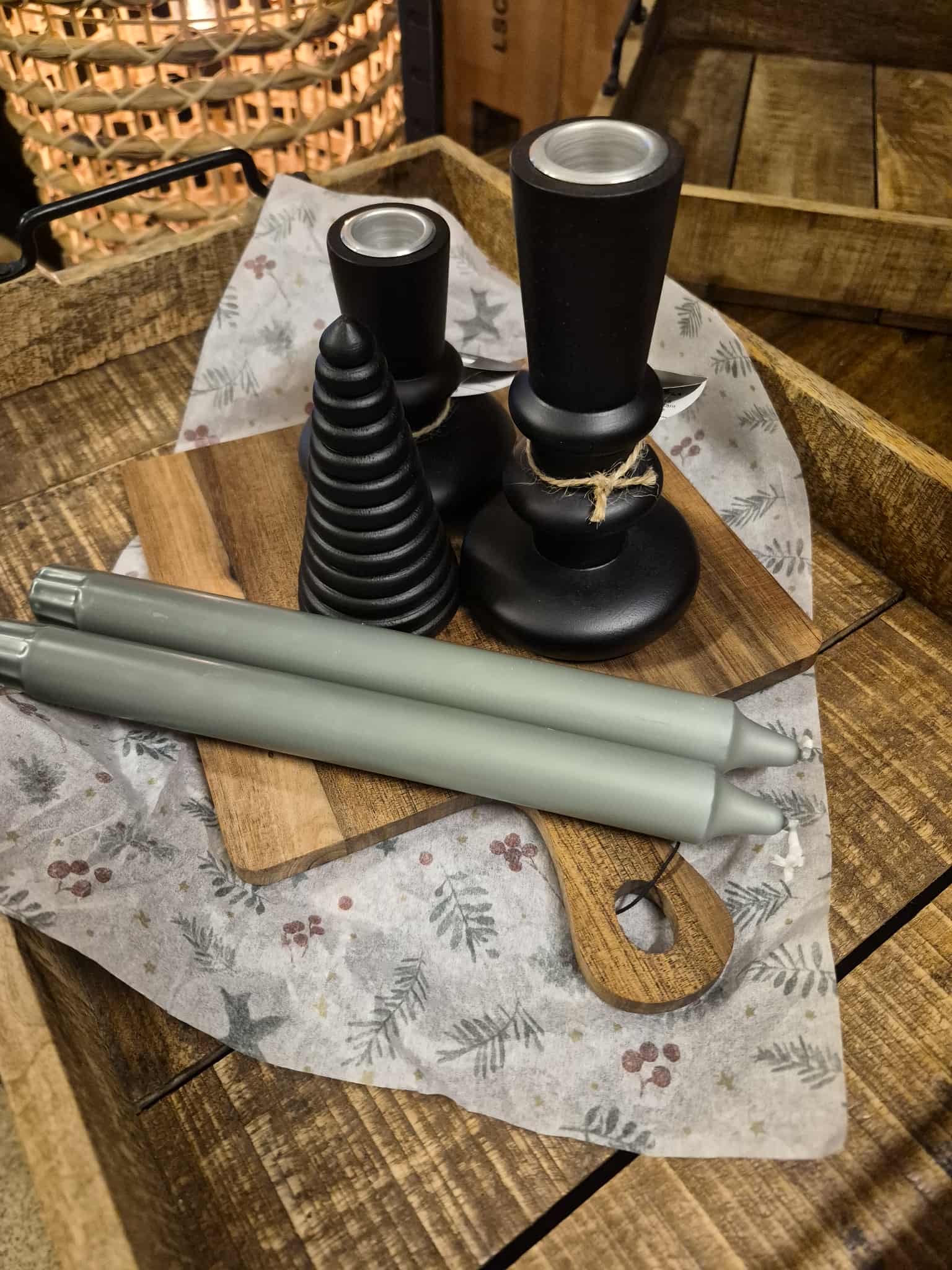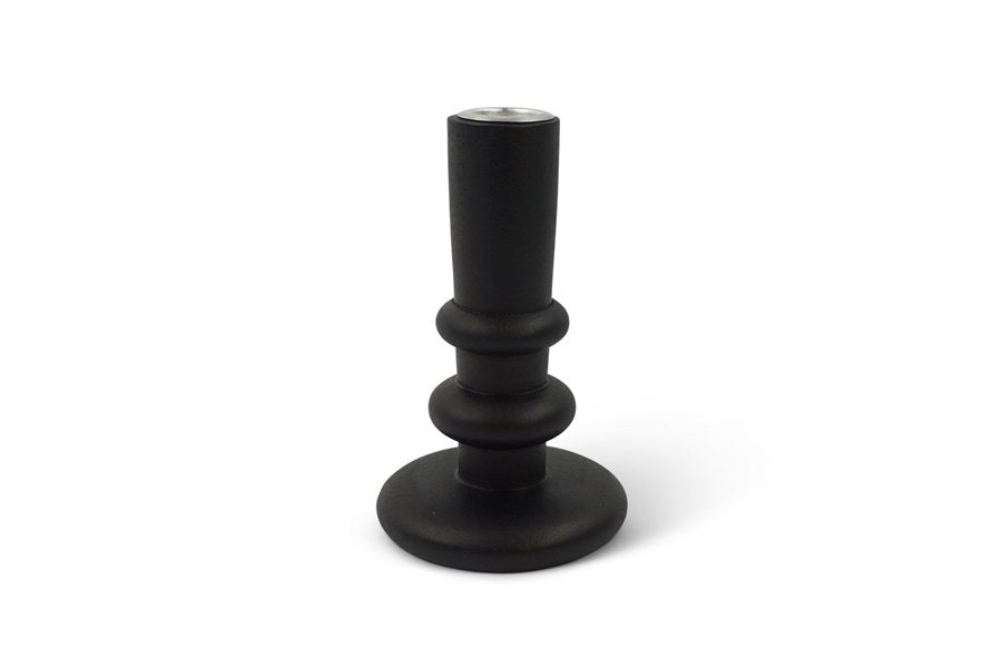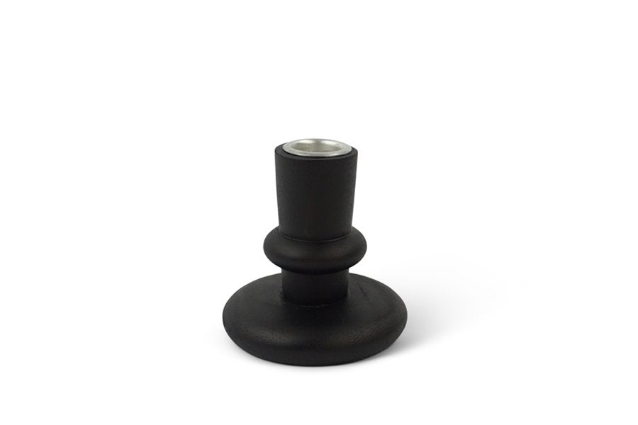 Tveir svartir viðar kertastjakar 13,5cm og 8,5