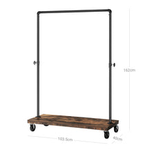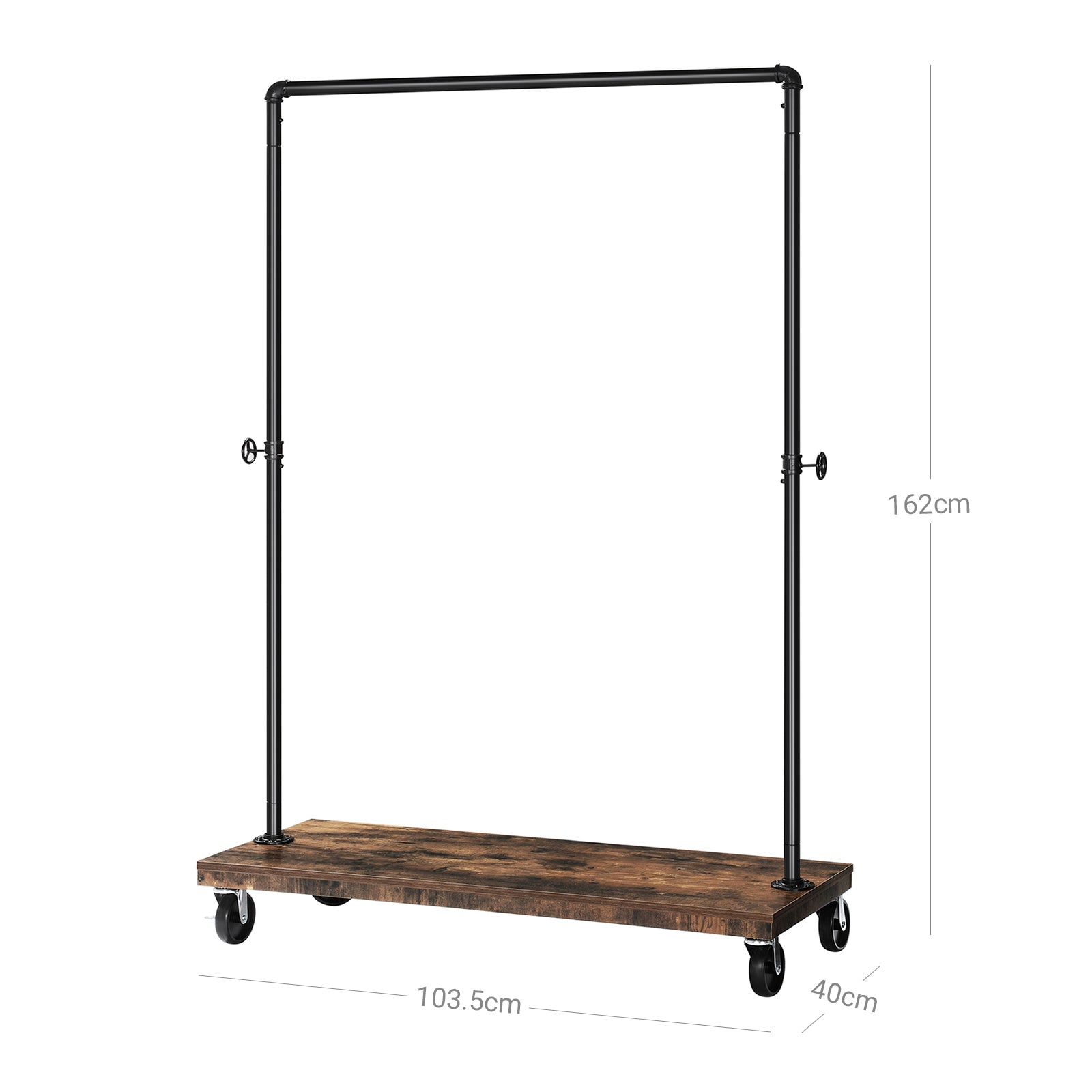 Flott og handhægt fatahengi á hjólum, hillan er úr mdf plötu klædd plastviðarlíki, hengið er úr svartlituðum málmi. Þægilegt að fara með á milli herbergja.