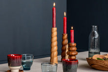 Geggjaður handunninn kertastjaki úr Acai við, þessi kertastjaki er með álbikar sem passar fyrir venjuleg, mjó kerti. Stjakarnir eru handunnir úr sjálfbærum viði.