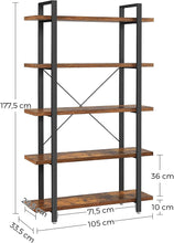 Stærð hillunnar er: Breidd: 105cm, Dýpt: 33,5cm, Hæð: 177,5cm, þykkt á hillum er 2,5cm