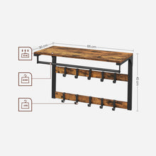 Falleg vegghilla sem kemur með hengi og 10 snögum sem hægt er að taka af og færa til af vild. Hengið er úr lituðu stáli og hillan klædd með plastviðarlíki.
