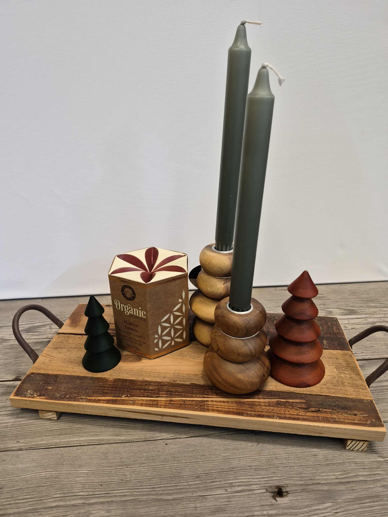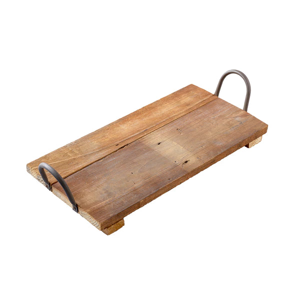 Langur grófur viðarbakki með járn handföngum, stærð bakkans: 40cm á lengd og 20cm á breidd